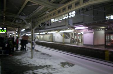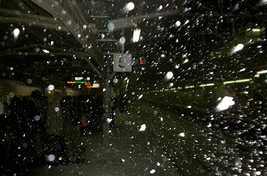 しかし!! すごい吹雪が!! みんなでガクガクブルブル おもわず陸橋部分へ避難(w いやぁ、素晴らしい吹雪です。(ちょっと弱くなってる所 雪も積もりまくり 臨時快速そろそろくるぞー