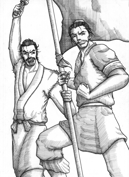 実はこういう感じの二人の像が中国にあります。写真見ながら描きました。